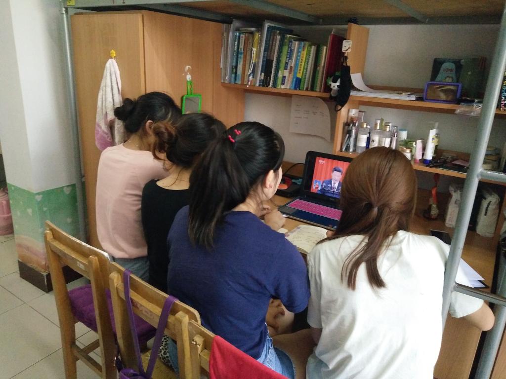 学生党员在宿舍观看习近平总书记“七一”重要讲话 |