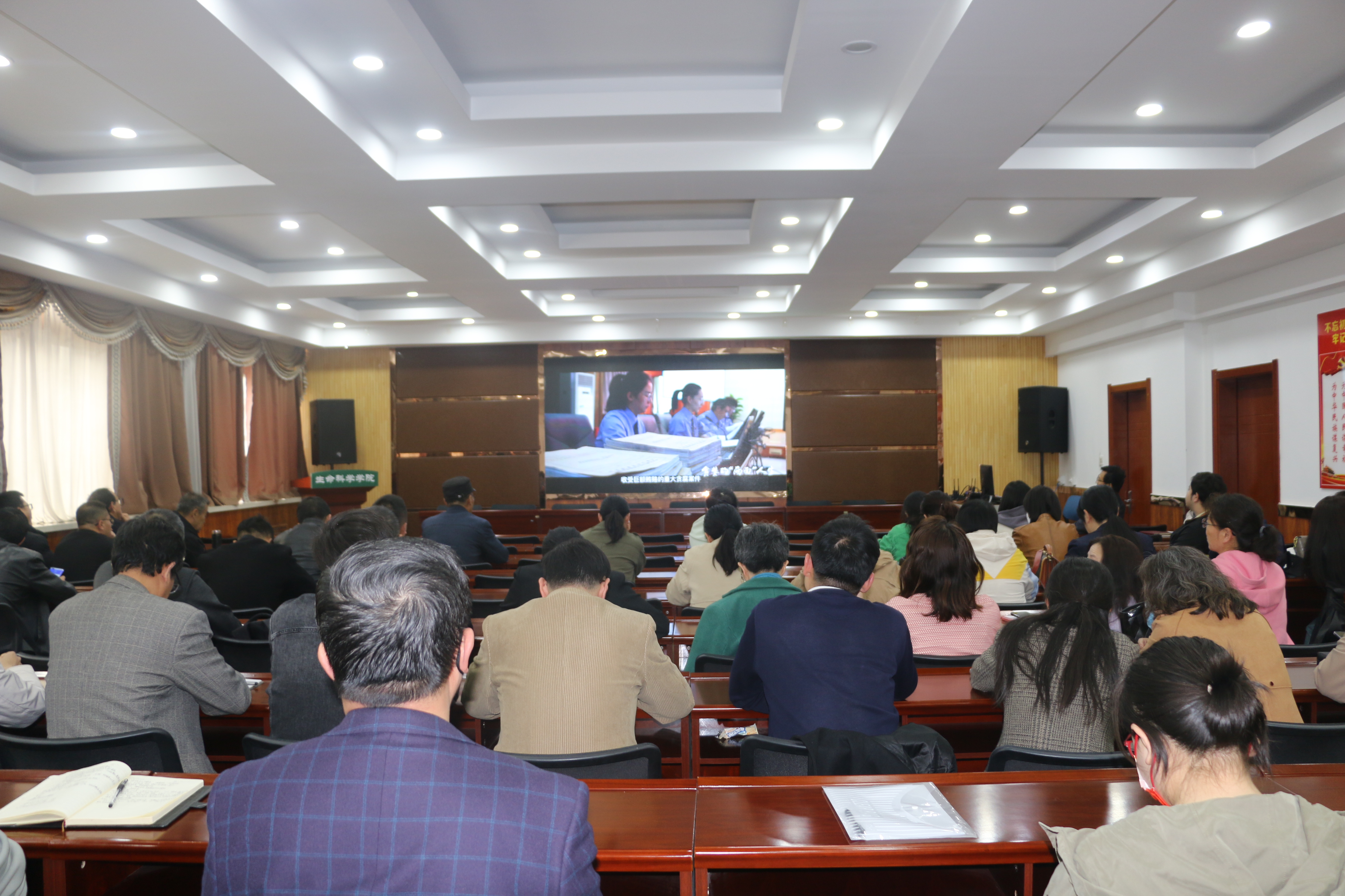 会后,全体教职工共同观看了警示教育专题片《贪婪的“两面”人生》。