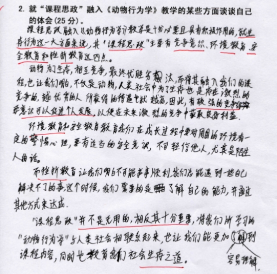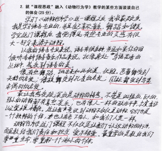 4.3《动物行为学》融入课程思政,学生的心得体会